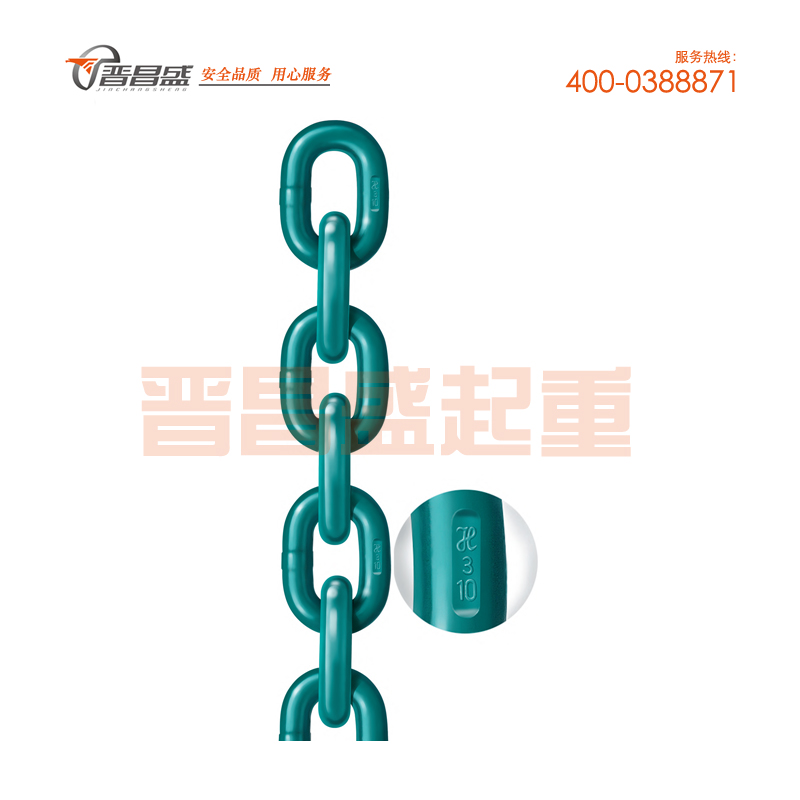 2、根據(jù)標準EN818-2,相同的鏈條尺寸,10級鏈條的工作負載比8級鏈條的高25%